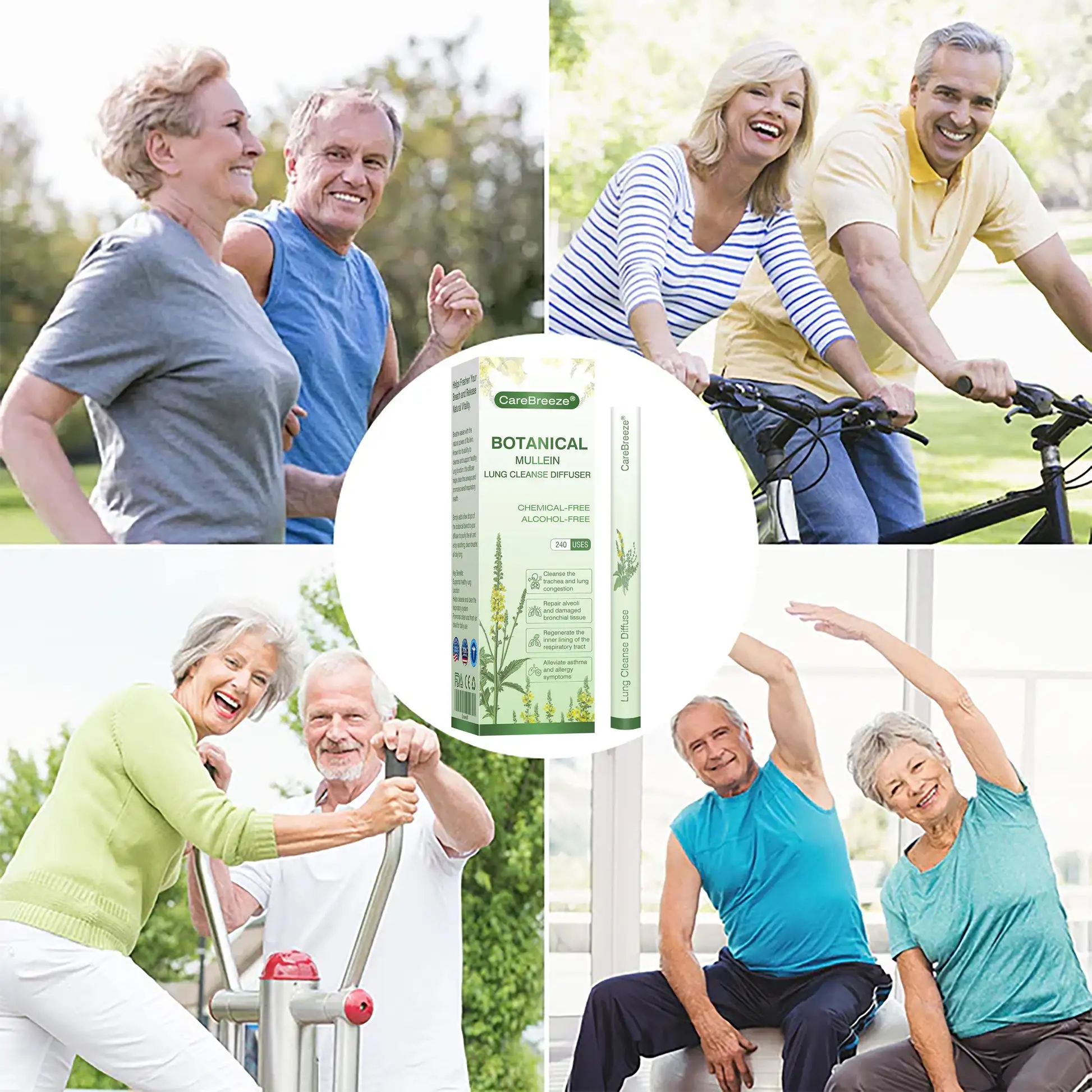“The CareBreezeยฎ Botanical Mullein Lung Cleanse Diffuser has completely transformed my respiratory health. After years of smoking and vaping, my lungs were constantly congested. I struggled with shortness of breath, persistent coughing, and excessive phlegm. Even with doctor-prescribed medications, the relief was only temporary. But within just five days of using the CareBreezeยฎ diffuser twice daily, I noticed a dramatic difference. My breathing felt easier, and the stubborn congestion started clearing. By the third week, I was shocked at how effortlessly I could climb several flights of stairs without getting winded. This diffuser is a true lifesaver, and Iโm beyond thrilled with the results!” โ Ryan Mitchell, Age 67, Seattle, Washington